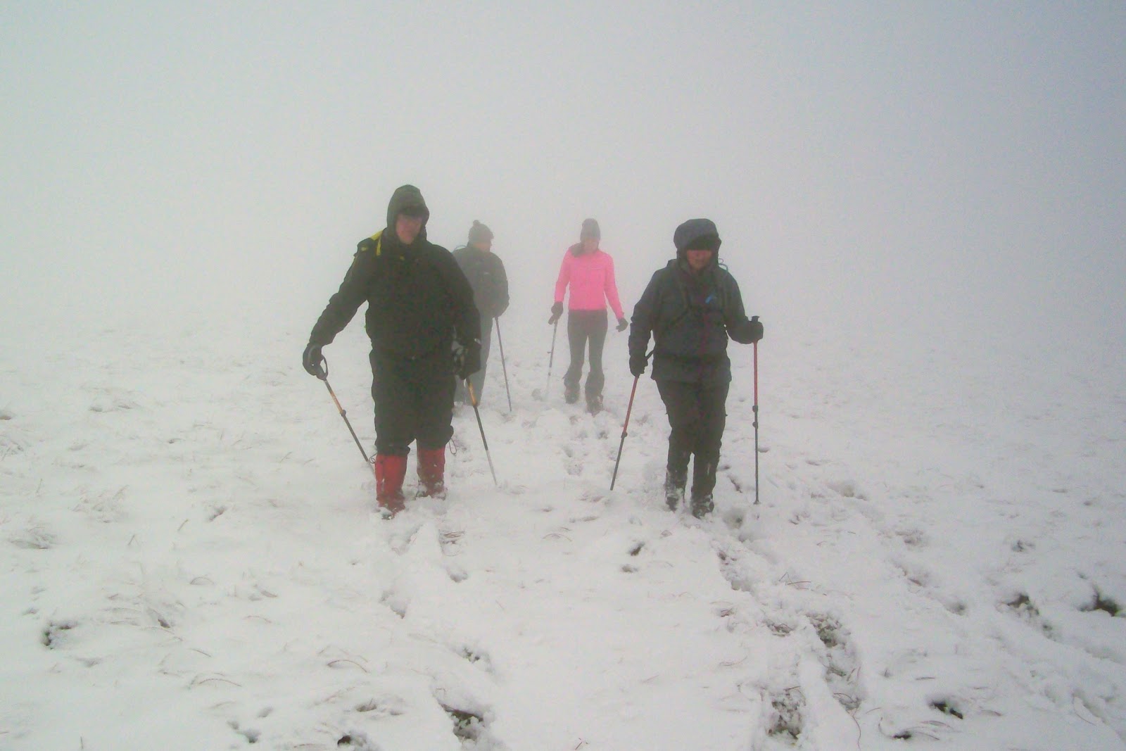 One of our group Anna did the complete loop of the lake where of the 5 that got to the top went back down the same way as it could be a bit icy and slippy on the descent doing the complete loop of the lake. But yes we had one brave soul.