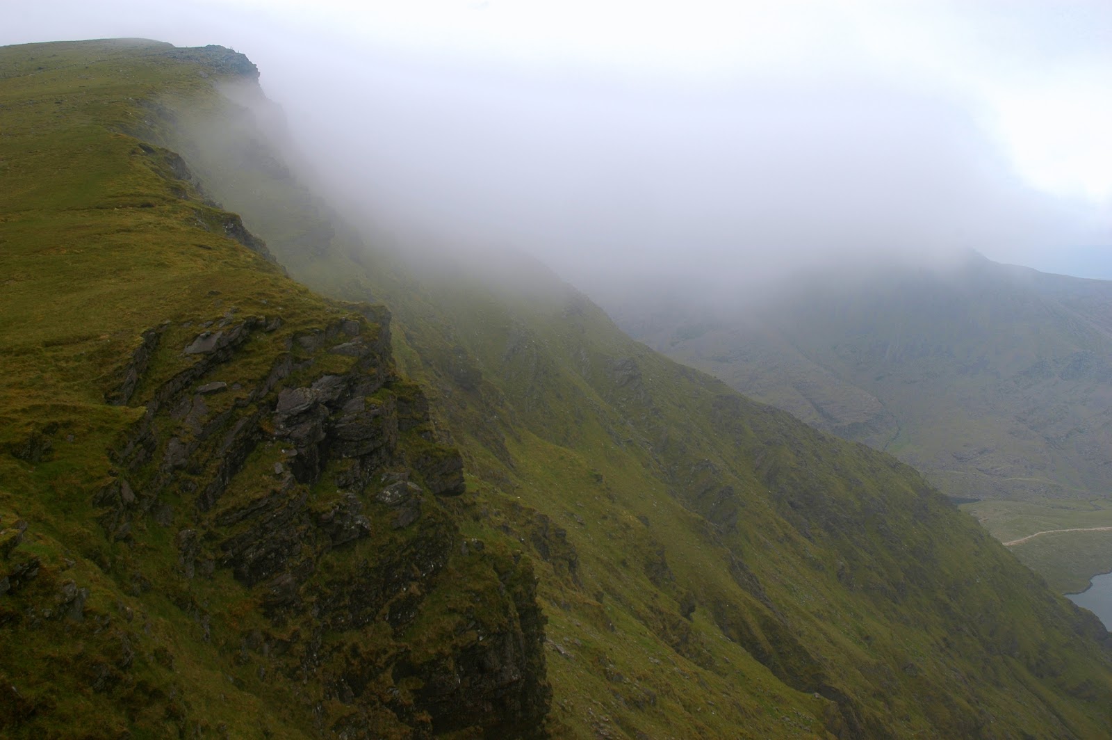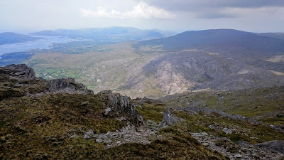As we made our way down below the clouds the views appeared again. To the West of us was the Black Valley and we could out towards Kenmare on one side and Inch Beach on the other and our left were The Reeks and the really Big One .The other noticeable thing as we came down the level of chatter was increasing as the severity decreased.
